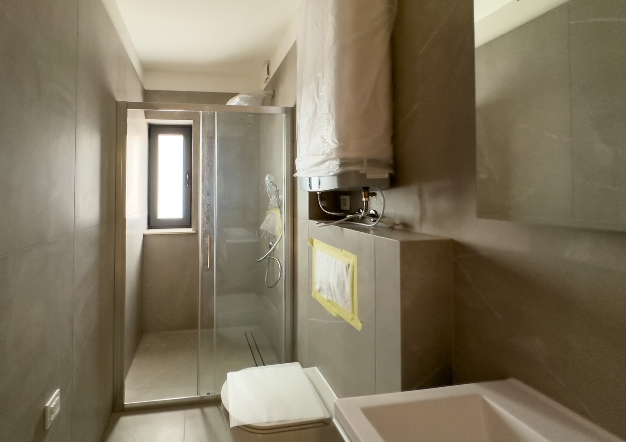 The apartment is equipped with underfloor heating, 3 air conditioning units for perfect temperature control throughout the year, electric shutters, and high-quality aluminum joinery. On the groundfloor there are boxes for the storage.
